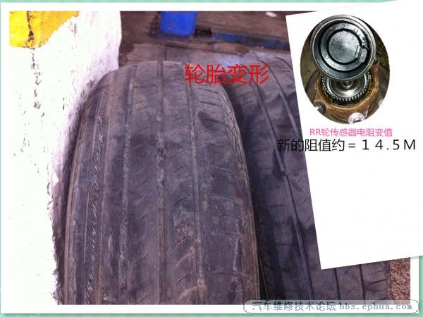 故障解決:更換右后輪傳感器及兩個前輪輪胎。